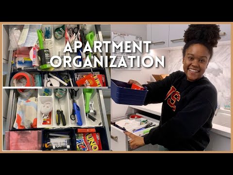 Organize my small apartment with me! In this week's video, I am tackling the clutter and organizing under my kitchen sink, my bathroom and toiletries, my utility drawer in the kitchen, and my entryway space.